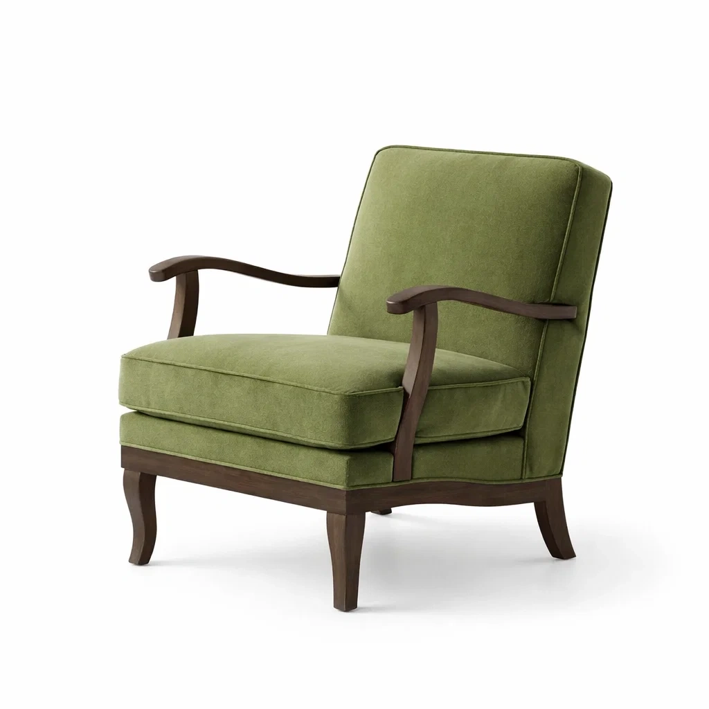 Fauteuil en bois avec rembourrage vert