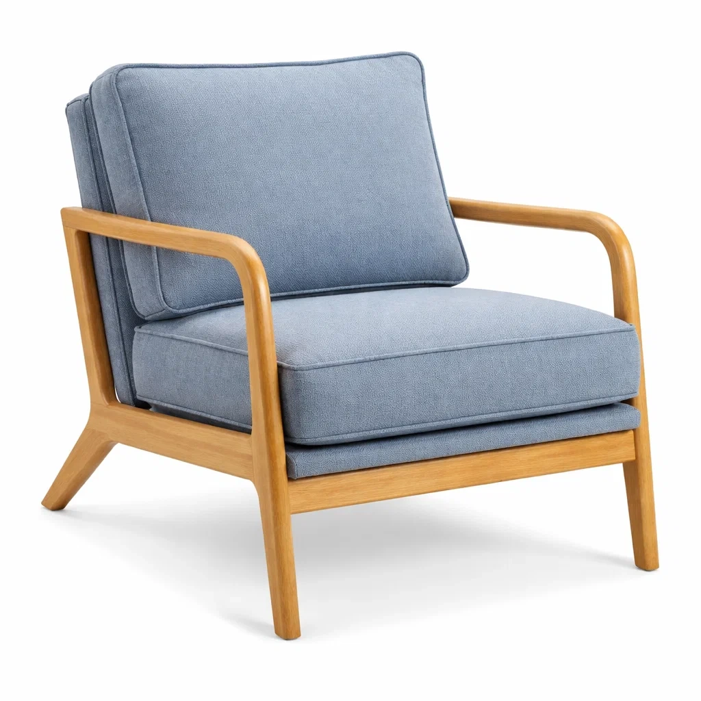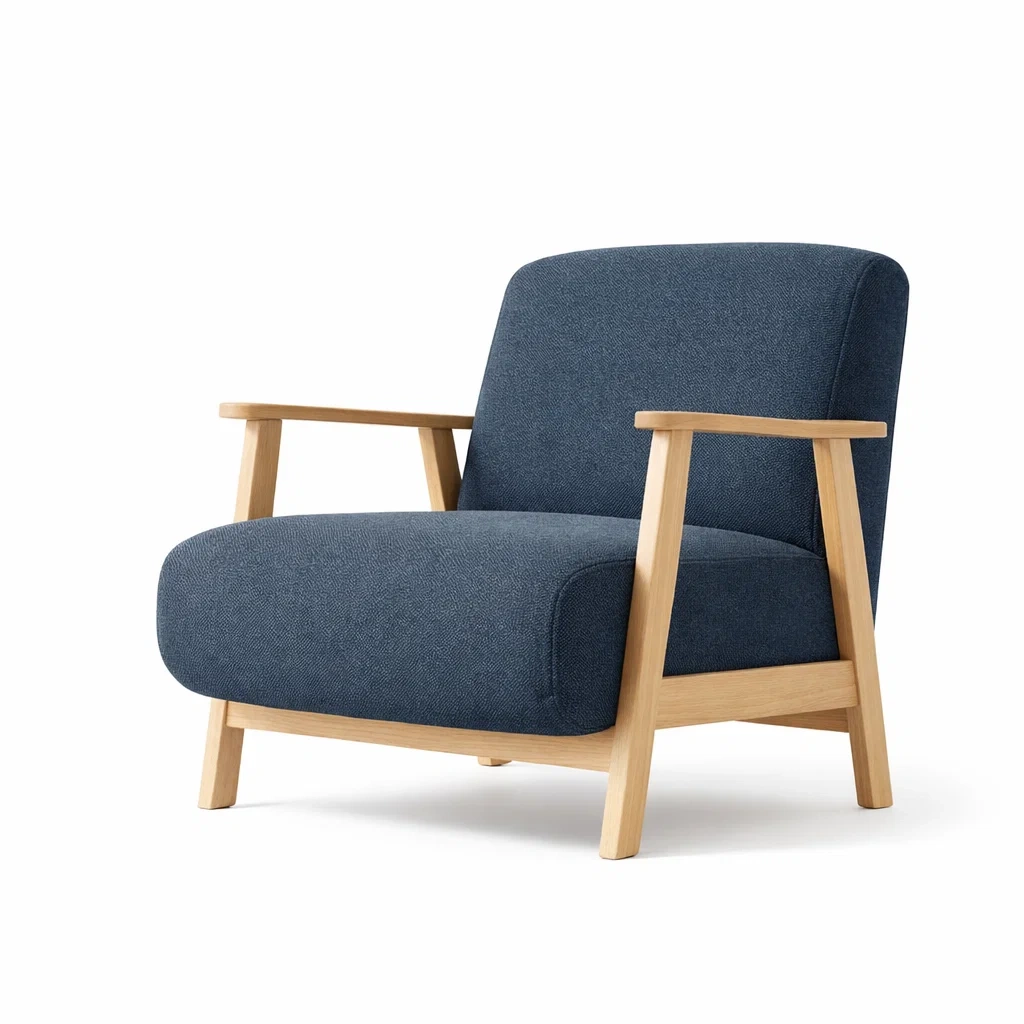 Fauteuil en bois avec tissu polyester bleu