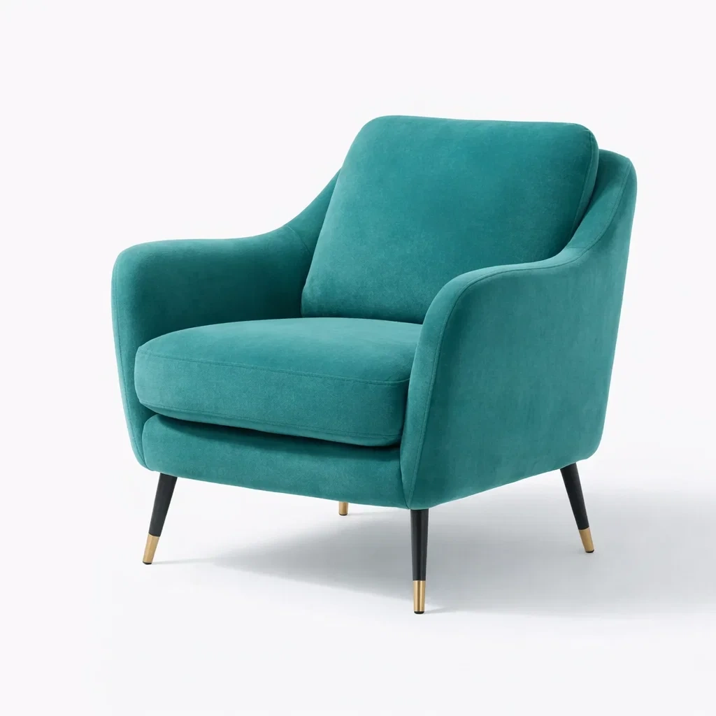 Fauteuil en velours polyester vert turquoise avec pieds en métal