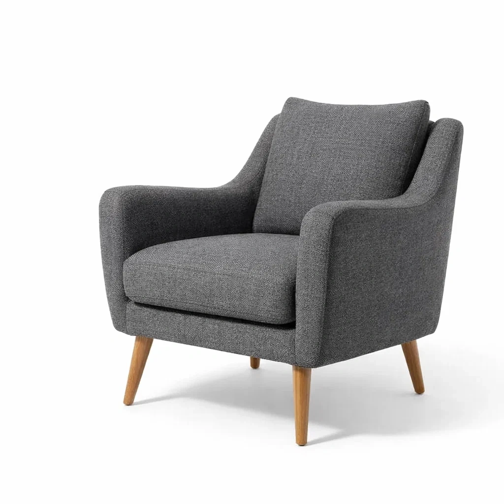 Fauteuil en tissu gris avec pieds en bois