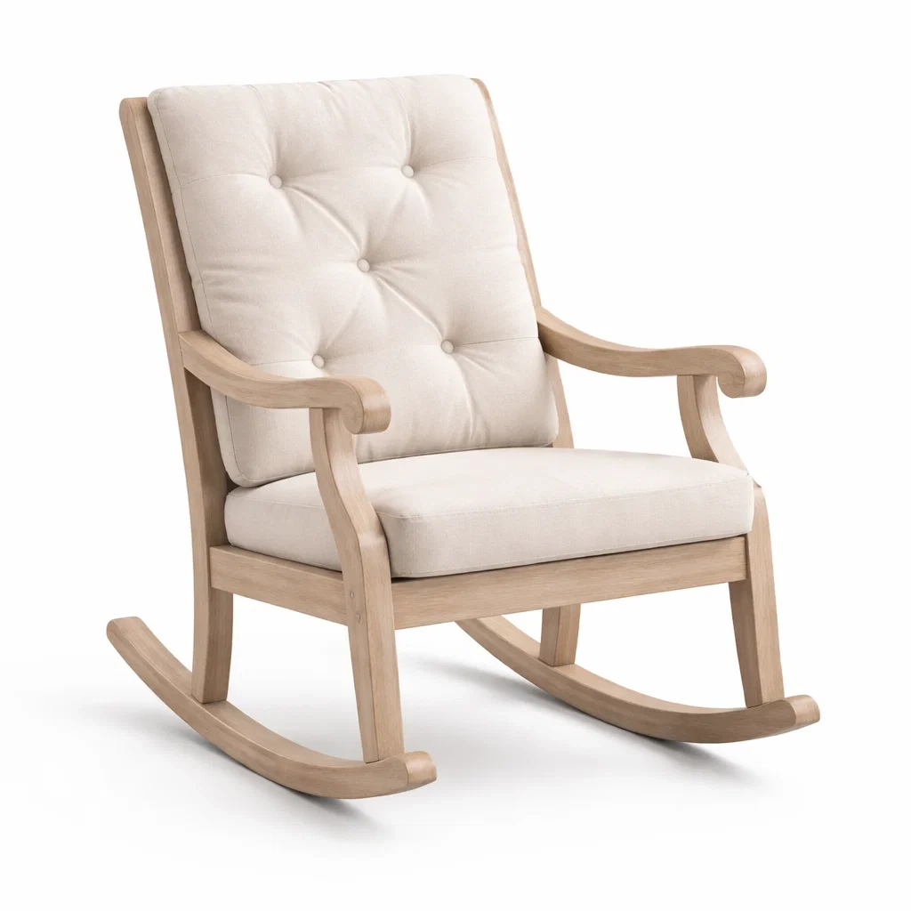 Fauteuil à bascule en bois et tissu beige