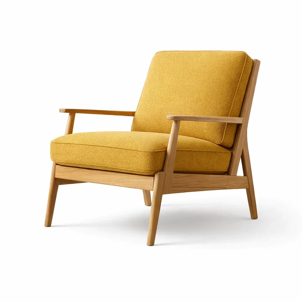 Fauteuil en chêne et tissu jaune